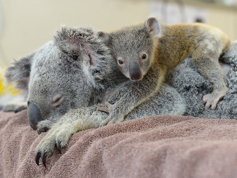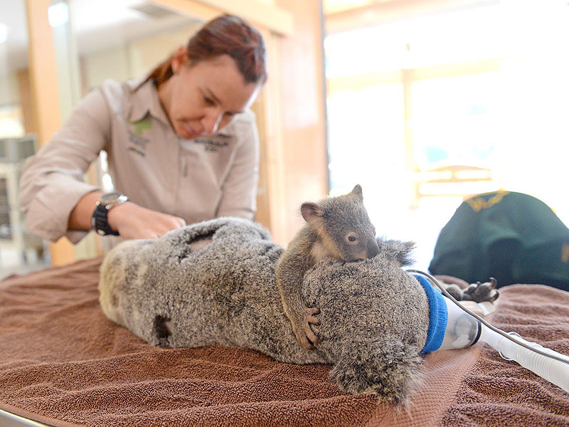 Lizzy the koala was taken to a wildlife hospital in an Australian zoo, with her son holding on to her side. Poor Lizzy had been hit by a car. Her little boy, Phantom, only 6-months-old, was luckily unharmed and refused to leave his mother.